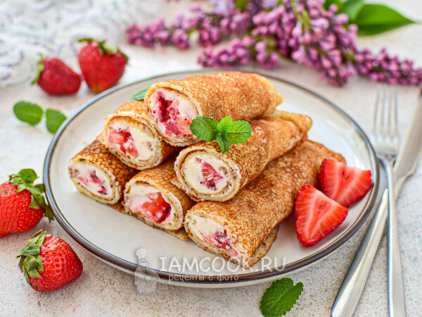 Сладкая и сочная клубника, легкий крем и тонкие румяные блинчики – в сочетании это создает потрясающий десерт, который обязательно станет хитом на любом столе. Хотя придется потратить время на приготовление блинов, результат полностью оправдает усилия. Если будни не позволяют, выделите время в выходные и порадуйте себя и своих близких этой восхитительной вкуснятиной.