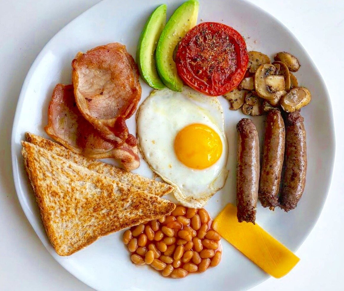 Одним из самых знаменитых блюд, которое регулярно подвергается критике из-за своей калорийности, является полный английский завтрак (full English breakfast). Он включает в себя: