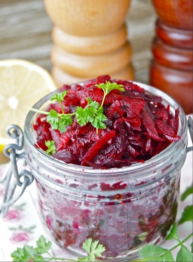 Ваша острая закуска из свеклы с хреном готова! Подавайте ее как дополнение к основным блюдам или просто с кусочком хлеба. Приятного аппетита!