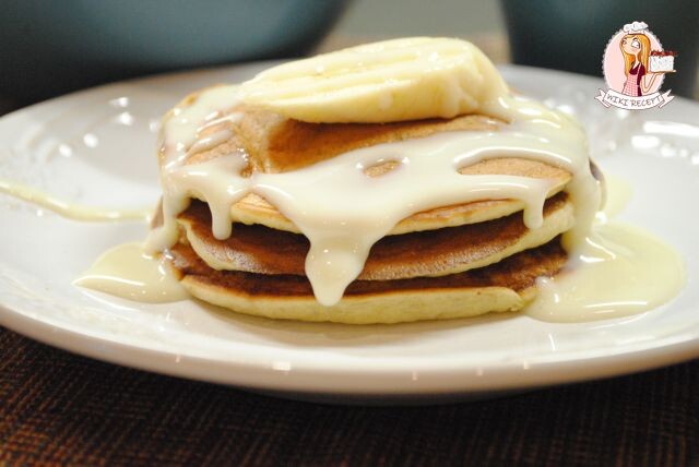 Подавайте панкейки горячими, украсив их кусочками свежего банана и любым соусом по вкусу — идеально подойдет сгущенное молоко или варенье. Приятного аппетита!