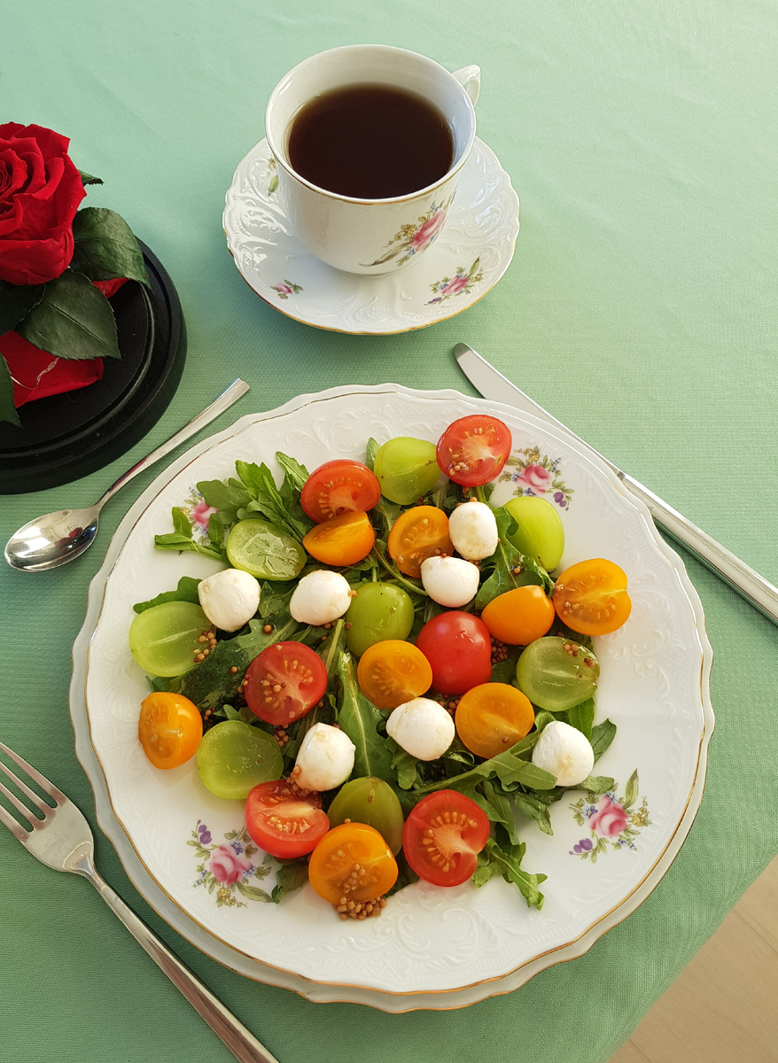 Солнечная свежесть на вашем столе! Этот легкий салат идеально подходит для тех, кто ценит изысканный вкус и здоровье. Сочетание рукколы, помидоров черри и мускатного винограда подарит настоящую гамму ощущений.