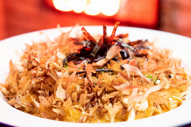- Зеленый лук, нори, стружка тунца для украшения