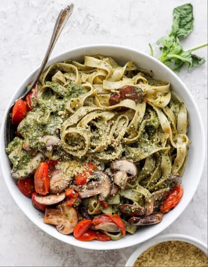 Погрузитесь в атмосферу итальянского уюта с этой пастой, которая станет настоящей звездой вашего ужина. Сочетание домашнего соуса песто, свежих томатов и ароматных шампиньонов заставит ваших гостей аплодировать и вернуться за добавкой!