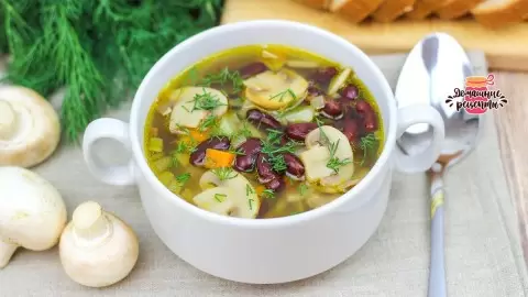 Этот постный суп с грибами и фасолью отличается не только своей густотой, но и удивительным ароматом. За короткое время можно насладиться вкусным и сытным блюдом!