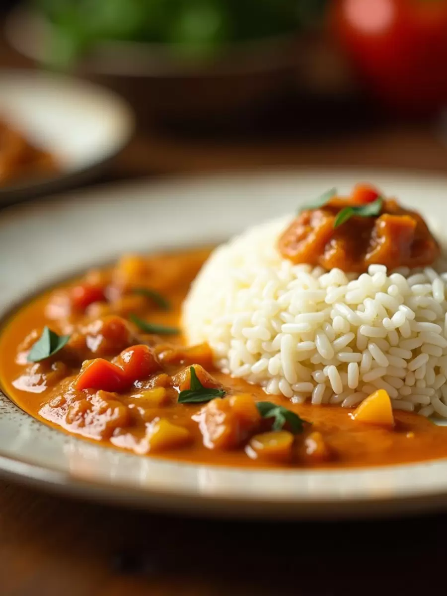 Блюдо подается горячим, аккомпанированным вареным рисом — сочетание, которое восхитит ваших гостей!