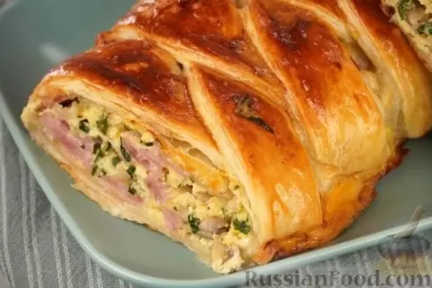 - Слоёный пирог с яичницей и ветчиной: Пирог с хрустящей корочкой и нежной начинкой рассказал бы всякому, кто его попробовал, о том, как легко можно создать кулинарное волшебство на своей кухне.