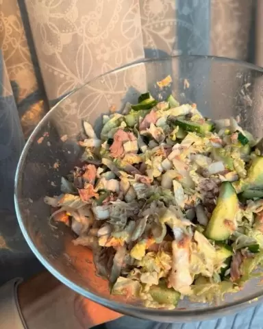 Хотя в данный момент никаких других дополнений не предусмотрено, стоит отметить, что добавление авокадо сделало бы этот салат еще более привлекательным. К сожалению, в наличии его не оказалось, но это не помешало воплотить идею в жизнь с теми продуктами, которые были под рукой.