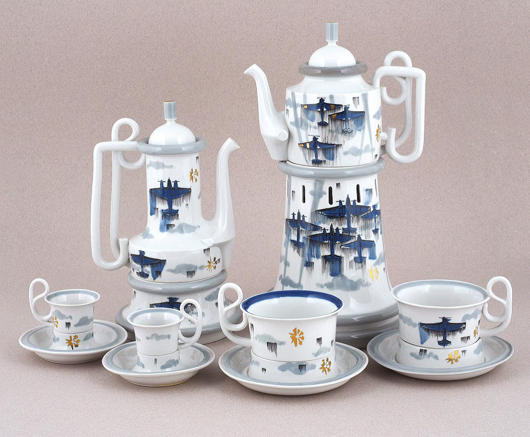 Борис Ефимович Калита, один из ведущих мастеров Дмитровского фарфорового завода, на тридцатилетие Великой Победы представил уникальную работу, которая по своей концепции выходит за рамки обычного сервиза. Известное как «Чайно-кофейный сервиз», это произведение является архитектурной композицией «Военное небо», демонстрирующей богатство и сложность художественного выражения.