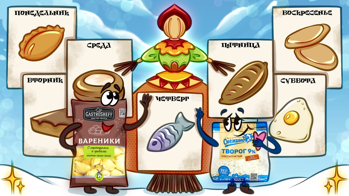 Этот день — для народных забав и угощений. Парни зовут девушек поиграть в снежки, а хозяйки ставят на стол разнообразную выпечку: сырники, запеканки и пирожки. Ключ к успешным сырникам — свежие молочные продукты, их качество определяет вкус. Например, рассыпчатый творог аккуратно «держит форму» и раскрываетCompletes;