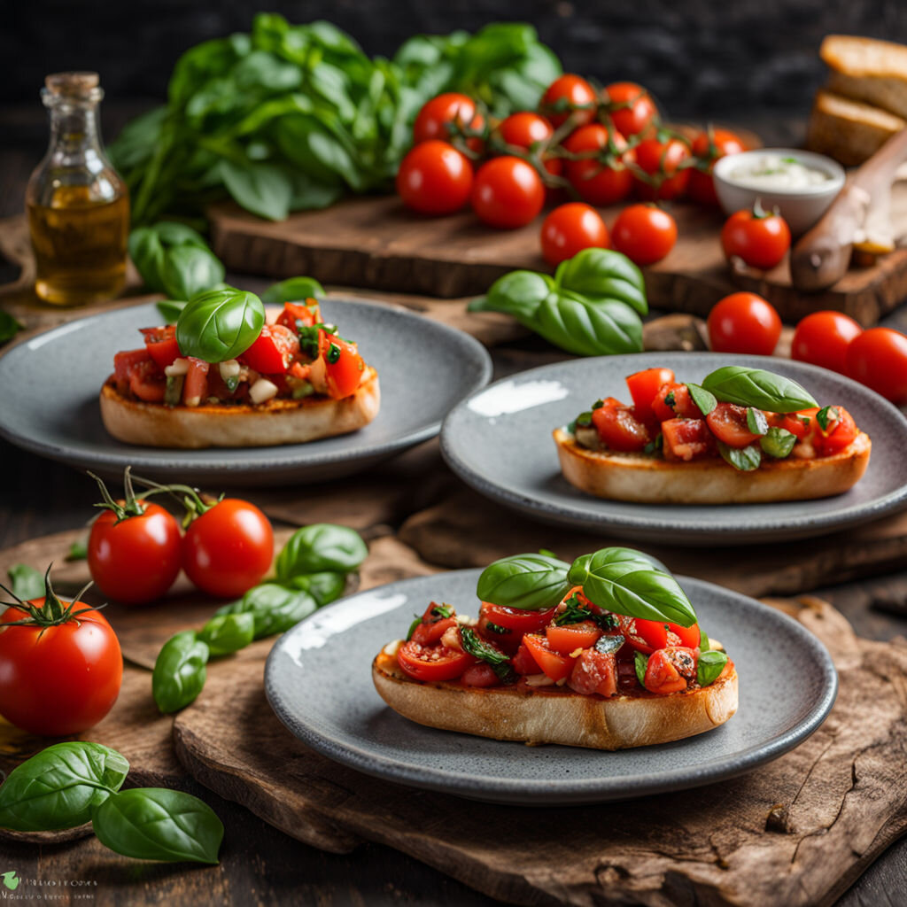- Брускетта с томатами и базиликом: для этого блюда вам понадобится багет, спелые помидоры, свежий базилик и оливковое масло. Ломтики багета просто поджарьте и украсьте их томатной смесью, добавив немного соли и перца.