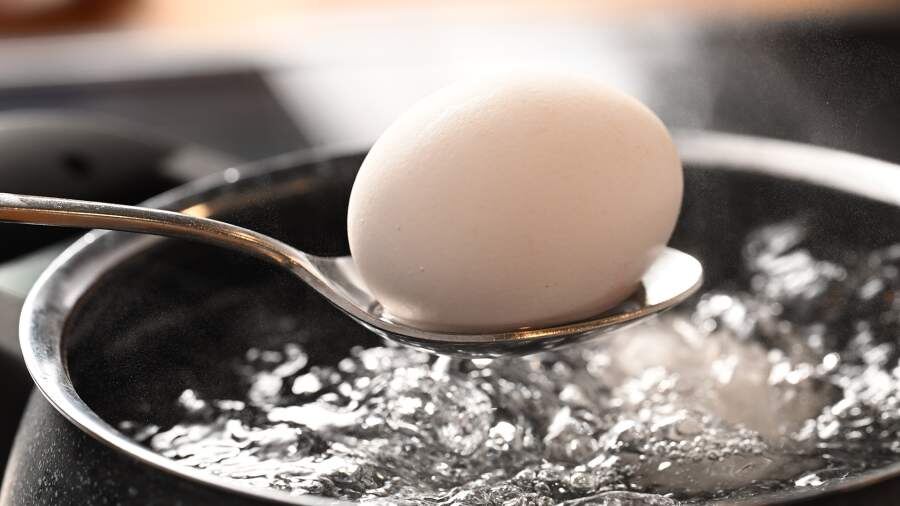 - Второй метод: опустить яйца в кипящую воду с помощью ложки. Обычно нужно варить 3 минуты для жидкого желтка, 4 минуты — для слегка загустевшего, и 5 минут — для желтка с мягкой серединкой.