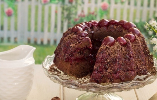 Получившуюся смесь следует влить в сухие компоненты и тщательно перемешать, пока тесто не приобретёт однородную консистенцию. Для выпекания лучше всего использовать форму «бундт», благодаря её форме корж получится равномерным и красивым.