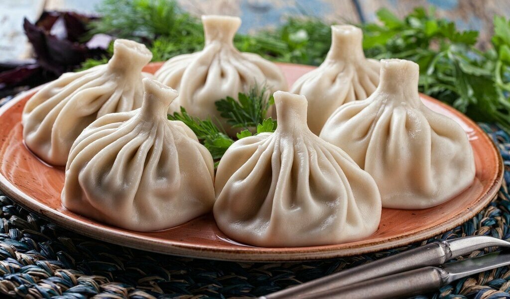 - Казбегури — хинкали из Казбеги с рубленым мясом и горными травами, придающими им уникальный характер.