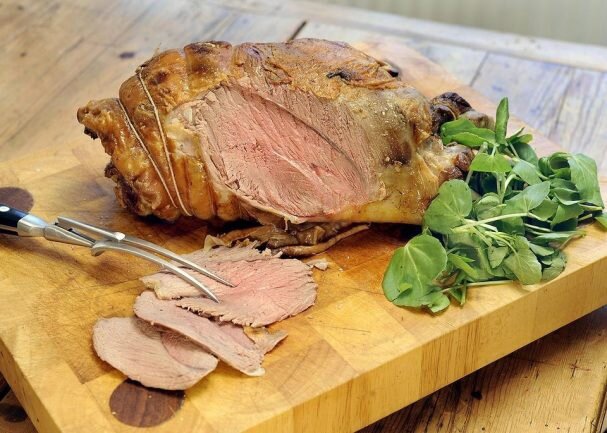 4. Натрите баранину солью и перцем, тщательно втирая специи в мясо. Это позволит специям лучше проникнуть внутрь. Поставьте баранину в духовку и запекайте около 55 минут.