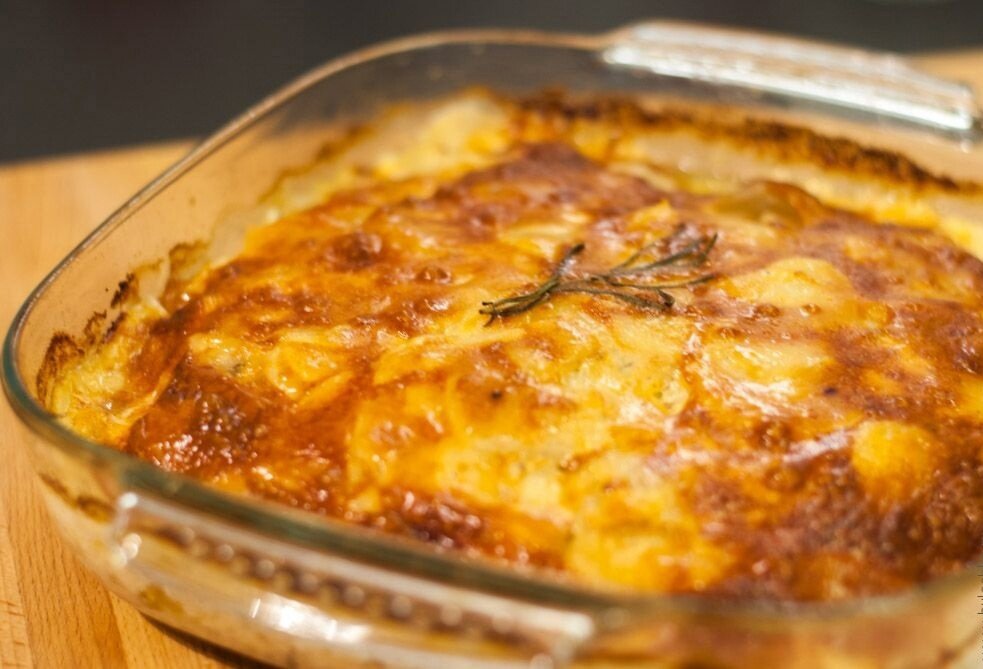 Украшаете веточкой розмарина или тимьяна и запекаете блюдо в духовке 40-45 минут. Когда картофель станет золотистым и ароматным, он будет готов к подаче.