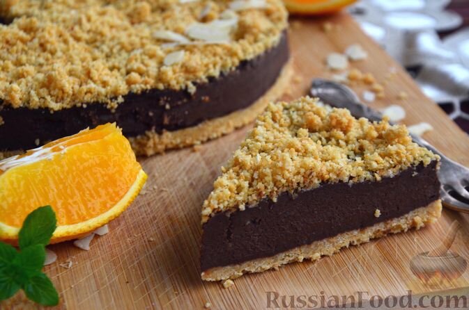 - Шоколадный муссовый торт с печеньем и миндалем. Этот десерт не требует выпекания и обязательно удовлетворит сладкоежек. Хрустящая миндальная крошка служит основой, а между слоями располагается нежный сливочно-шоколадный мусс с добавлением цедры апельсина.