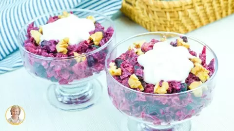 Этот удивительный салат, в котором сочетаются свекла, чернослив и грецкие орехи, готовится всего за несколько минут (не включая время на варку свеклы). Он станет отличным дополнением как для праздничного стола, так и для уютного семейного обеда.